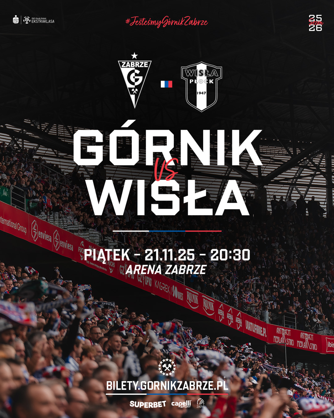 Górnik Zabrze zaprasza na mecz! 18 listopada 2025, dodane przez: M.K Górnik Zabrze S.A. zaprasza na mecz z Wisłą Płock, który odbędzie sie 21 listopada o godz. 20:30 w Zabrzu!