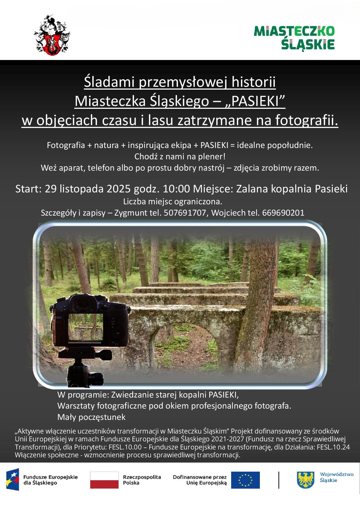 Zapraszamy mieszkańców oraz wszystkich miłośników fotografii i lokalnej historii na wyjątkowy plener fotograficzny pod hasłem „Śladami przemysłowej historii Miasteczka Śląskiego – PASIEKI. W objęciach czasu i lasu zatrzymane na fotografii”.
