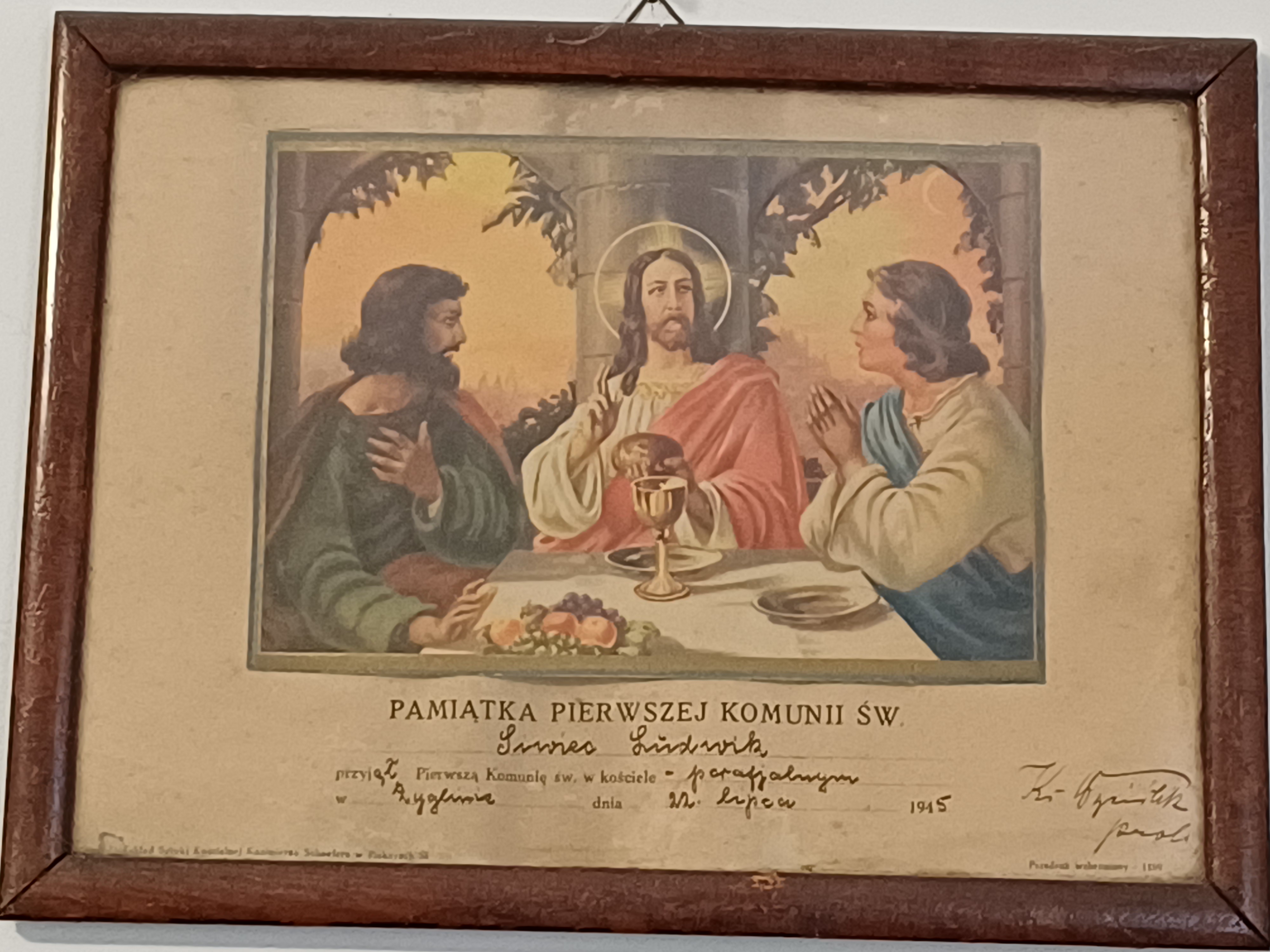 Od najmłodszych lat największą pasją Pana Ludwika była hodowla gołębi pocztowych, którymi zajmuje się do dziś. Kolekcjonuje również puchary i obrączki dla gołębi pocztowych. Załączamy zdjęcie pamiątki Jubilata z I Komunii Świętej z 1945 r. – warto zwrócić na nią uwagę.